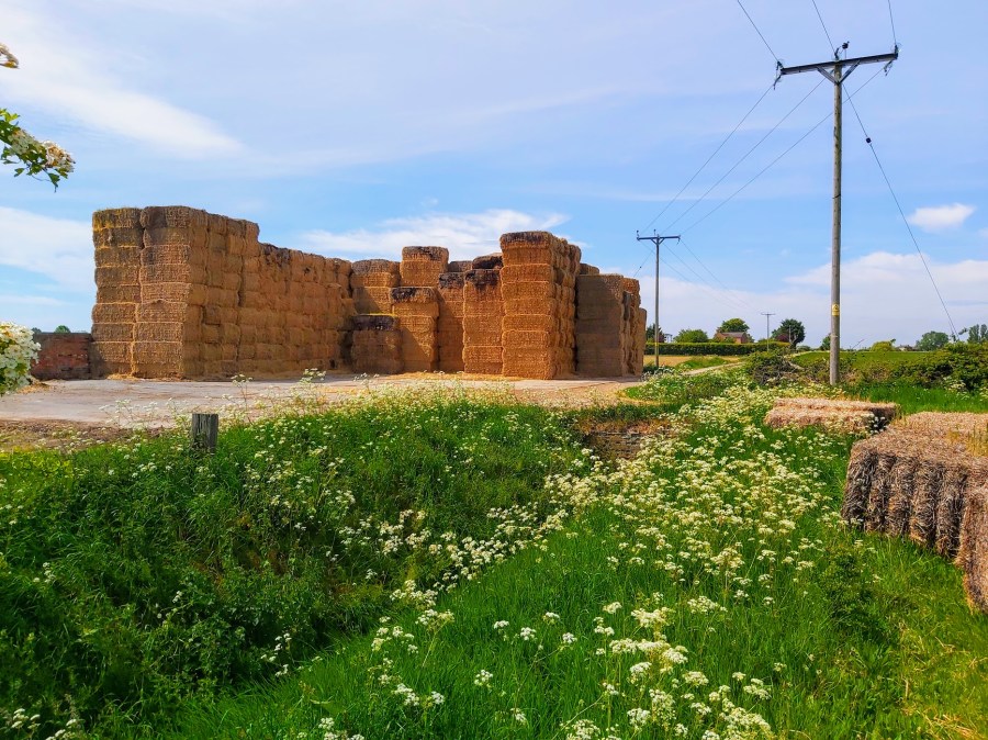 TWO GIANT HAYSTACKS WITH CONVERGING LINES