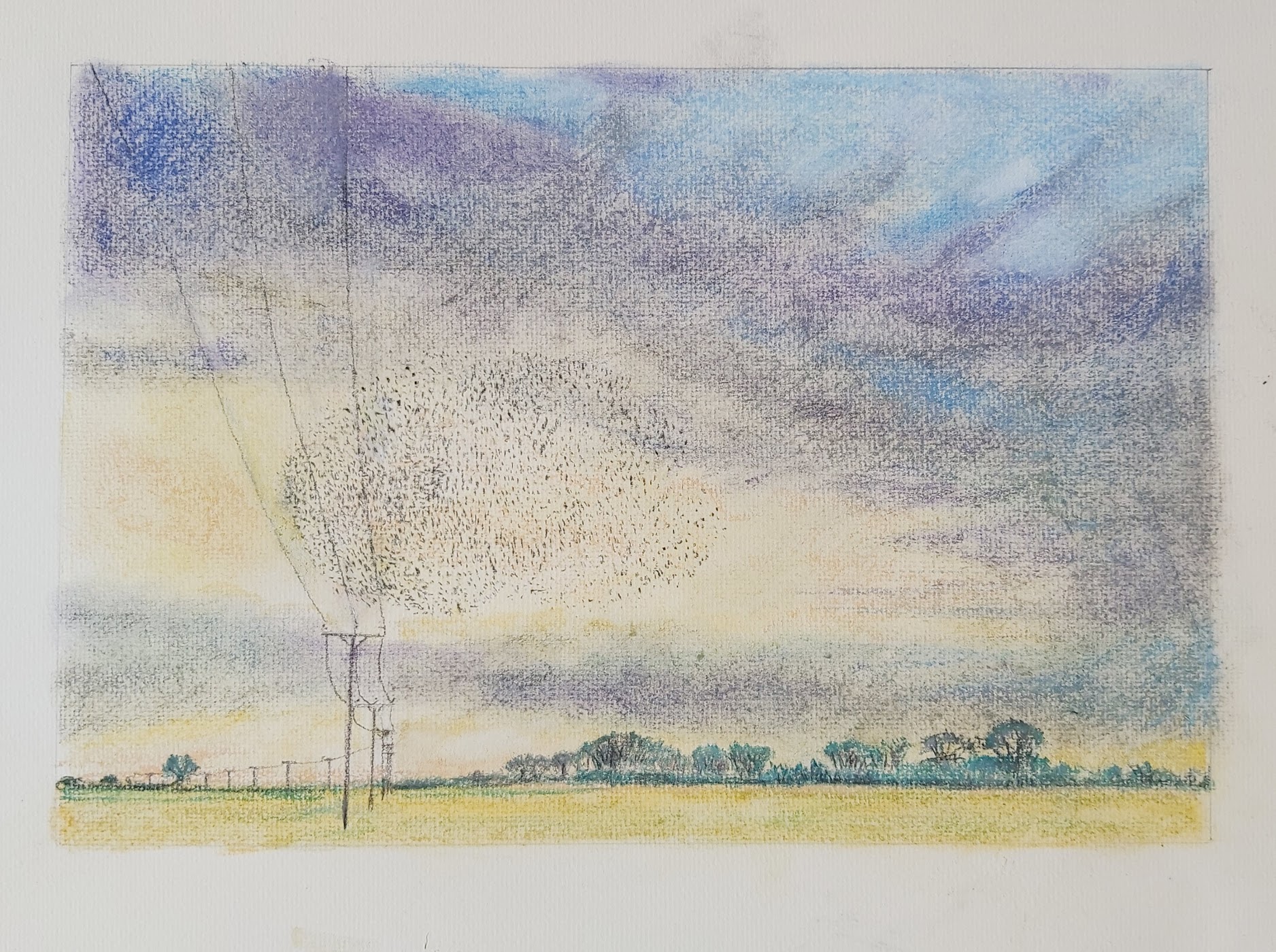 TWO GIANT HAYSTACKS WITH CONVERGING LINES