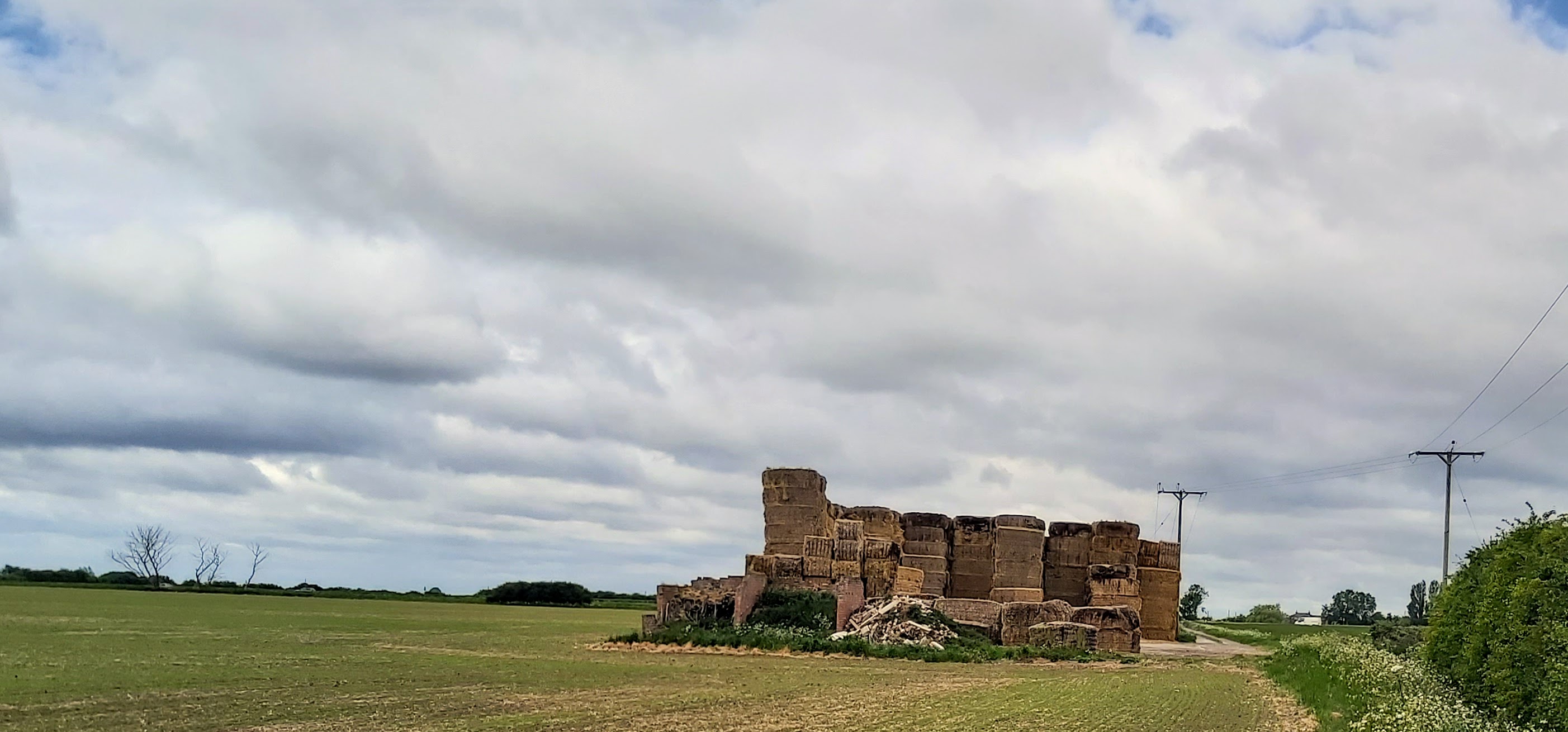 TWO GIANT HAYSTACKS WITH CONVERGING LINES