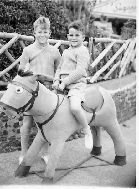 This picture shows me a few weeks after the bonfire incident with my older brother Martin still nursing bandaged feet due to the burns I suffered